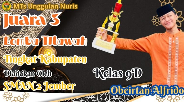 Pesantren Nuris – Kabar membanggakan datang dari salah satu siswa berbakat MTs Unggulan Nuris, Obertan Alfrido. Siswa yang duduk di kelas 9D tersebut sukses menorehkan prestasi gemilang dengan meraih Juara 3 dalam ajang Lomba Tilawah Tingkat Kabupaten yang diselenggarakan oleh SMA Negeri 2 Jember.