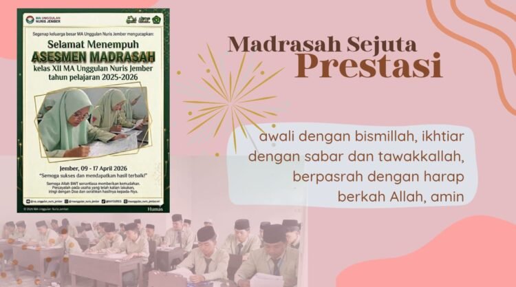 Pesantren Nuris – Per Kamis, 09 April 2026 hingga Jumat, 17 April 2026, siswa MA Unggulan Nuris tengah fokus melaksanakan asesmen madrasah (AM) tahun pelajaran 2025/2026. Sebelum mereka dinyatakan lulus, ini merupakan agenda ujian akhir yang harus dilewati hingga tuntas.