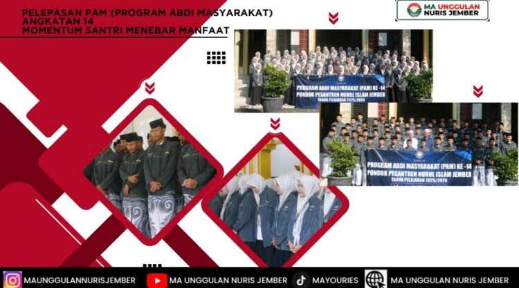 Pesantren Nuris — Pondok pesantren Nurul Islam Jember menggelar kegiatan pelepasan Program Abdi Masyarakat (PAM) Angkatan 14 pada Minggu pagi 12 April 2026 di Masjid Baitunnur. Acara yang dimulai pukul 07.00 WIB ini berlangsung dengan penuh khidmat dan diikuti oleh para santri kelas X dan XI, serta dihadiri oleh dewan guru dan pengasuh pesantren.