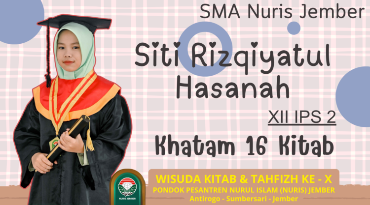 Salah satu wisudawati yang mencuri perhatian adalah Siti Rizqiyatul Hasanah, siswi kelas XII SMA Nuris Jember, sekaligus siswi diniyah kelas 3C Tsaniyah. Gadis yang akrab disapa Kikik ini berhasil menuntaskan hafalan 16 kitab kuning. Di tengah kebahagiaan wisuda, sebelumnya Kikik juga membawa kabar membanggakan karena dirinya dinyatakan lolos seleksi SNBP pada program studi Ilmu Kesejahteraan Sosial, FISIP, Universitas Jember.