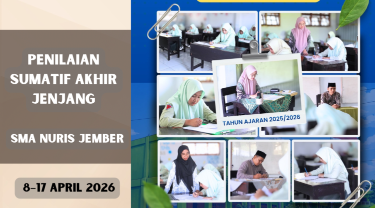 Pesantren Nuris – Pelaksanaan Penilaian Sumatif Akhir Jenjang (PSAJ) tahun pelajaran 2025/2026 di SMA Nuris Jember mulai berlangsung pada Rabu, 8 April 2026. Kegiatan ini menjadi salah satu tahapan penting bagi siswa kelas XII sebelum menuntaskan masa belajar mereka di jenjang sekolah menengah atas. Suasana pagi di lingkungan sekolah tampak lebih khidmat dari biasanya, dengan siswa hadir lebih awal untuk mempersiapkan diri mengikuti ujian.