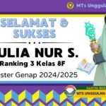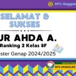 Prestasi27/10/202527 Siswi MTs Unggulan Nuris, Zoe Alzena Raih Peringkat Pertama di Kelas VIII F Semester Genap 2024-2025 Bukti Konsistensi dan Semangat Belajar Siswa MTs Unggulan Nuris Tahun … Share