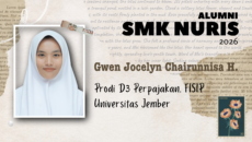 Alumni SMK, Pojok Alumni10/04/2026 Konsisten dalam Akademik dan Aktif Organisasi, Alumni SMK Nuris Berhasil Tembus SNBP 2026 ke Prodi Perpajakan UNEJ Rajin dan Multitalenta, Gwen Masuk Kuliah Tanpa Tes Pesantren Nuris … Share