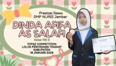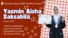 Prestasi25/03/2026 Bak Kilat Menyambar Prestasi! Yasmin Aisha, Siswi SMP Nuris Jember, Lolos TOPAZ Sains Penyisihan Kabupaten Awalnya Cuma “Kepo IPA”, Sekarang Siap Menuju Babak Final Nasional… Share