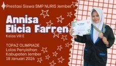 Prestasi07/04/2026 Siswi SMP Nuris Jember Ukir Prestasi Membahana, Annisa Elicia Farren Lolos Olimpiade Bahasa Inggris Tingkat Kabupaten Dari Anak yang Super Ngefans Bahasa Inggris Jadi Pejuang Olimpiade … Share