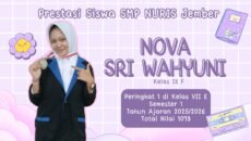 Prestasi11/02/2026 Mahkota Ilmu Tersemat di SMP Nuris Jember, Peringkat 1 Kelas IX F Berhasil Diraih Nova Sri Wahyuni Pelajaran yang Dipeluk Tekun, Peringkat 1 Kelas IX F Digenggam… Share