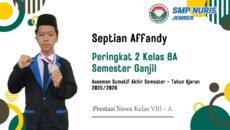 Prestasi06/02/2026 Menembus Tiga Besar, Elza Tunjukkan Konsistensi Prestasi SMP Nuris Jember Hasil ASAS Semester Ganjil Jadi Bukti Proses Belajar yang Terjaga… Share