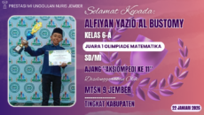Prestasi29/01/2026 Tiada Hari Tanpa Juara! Siswa MI Unggulan Nuris Jember Kembali Sabet Juara di AKSIOMPEDI! Alfiyan Yazid Al Bustomy Berhasil Meraih Juara 1 Olimpiade Matematika… Share