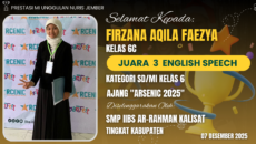 Prestasi17/12/2025 Berbekal Hobi Membaca, Siswi MI Unggulan Nuris jember Raih Juara 3 English Speech! Ibunda Firza Berharap Kemenangan Ini Bisa Memacu Semangat Putrinya Menjadi … Share