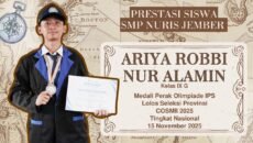 Prestasi26/11/2025 SMP Nuris Jember Semakin Jaya Berkat Prestasi Ariya Robbi Raih Medali Perak dan Melaju ke Final Nasional COSMII 2025 Jejak Juang Dua Tahun Ariya Mengarungi Dunia IPS hingga Perdana … Share