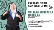 Prestasi26/11/2025 SMP Nuris Jember Cetak Prestasi Kancah Provinsi, Salwaa Musyaffa Nabillah Melaju ke Final Nasional COSMII 2025 Langkah Panjang Nabila Menaklukkan Tantangan IPA hingga Berbuah Final Nasional… Share