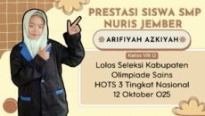 Prestasi22/11/2025 Arifiyah Azkiyah Lolos Seleksi Kabupateng Ajang HOTS 3! Sains Jadi Jalur Prestasi dari SMP NURIS Jember Melaju Kece ke Provinsi, Bukti Sains Itu Seru! Pesantren Nuris … Share