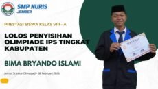 Prestasi29/04/2026 Pembuktian Diri Siswa SMP Nuris Jember, Bima Tembus Seleksi JSO Bidang IPS Deg-degan terbayar hasil, langkah awal menuju final Pesantren Nuris –… Share