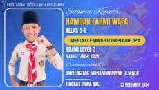 Prestasi20/01/2026 Hamdan Fahmi Wafa, Siswa MI Unggulan Nuris Jember Berhasil Sabet Medali Emas Tingkat Jawa-Bali! Dikenal Serba Bisa dan Berakhlak Mulia, Fahmi Jaid Kebanggaan Guru… Share
