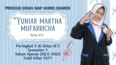 Prestasi21/02/2026 Mengguncang Kelas IX E, Yuniar Martha Mufarricha Ledakkan Prestasi Peringkat 3 di SMP Nuris Jember Dari Lembar demi Lembar yang Dibaca, Martha Menenun Prestasi Pesantren … Share
