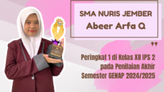 Prestasi28/08/2025 Raih Juara 1 Kelas XII IPS 2 di Semester Genap, Abeer Arfa Qareera Membuat Bangga SMA Nuris Jember Impian Besar yang Menjadi Pendorong Kesuksesan Pesantren Nuris – SMA … Share