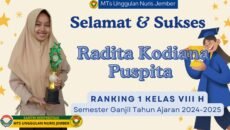 Prestasi01/12/2025 Radita Kodiana Puspita, Siswi MTs Unggulan Nuris Sabet Juara 1 Kelas VIII H Semester Ganjil Tahun Ajaran 2024–2025 Disiplin dan Semangat Belajar Siswi MTs Unggulan Nuris Berbuah Prestasi … Share