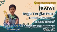 Prestasi21/10/2025 Meraih Gelar Tergiat, Shobri Ihsanul, siswa MTs Unggulan Nuris Raih Juara 1 Pramuka Lopsster XI Tingkat Kabupaten Gelar “Tergiat” Lahir Karena Semangat Yang Selalu Terjaga Dalam Regu… Share