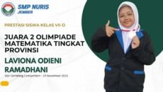 Prestasi29/01/2026 Angka, Tekad, dan Prestasi: Viona Bawa SMP Nuris Jember Bersinar di Level Provinsi Siswi Kelas VII D Raih Juara 2 Olimpiade Matematika Star … Share