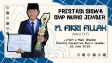 Prestasi20/09/2025 Kilau Prestasi Santri Situbondo: Fikri Fillah Raih Juara 2 MQK Harumkan Nama SMP Nuris Jember Santri yang Tak Lelah Mengaji, Fikri Menggenggam Juara dengan Ilmu… Share