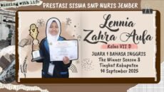 Prestasi30/09/2025 Berkibarnya Panji Kemenangan: Siswi SMP Nuris Jember Persembahkan Juara 1 Olimpiade Bahasa Inggris Lennia Zahra Melejit dalam Ajang The Winner Season 8 Tingkat … Share