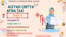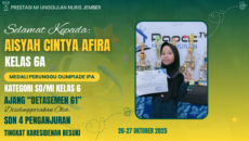 Prestasi08/11/2025 Aisyah, Siswi MI Unggulan Nuris Jember Memberikan Kado Manis di Tahun Terakhirnya Siswi Kelas 6A Ini Konsisten Kembali Berjaya di Panggung Sains… Share