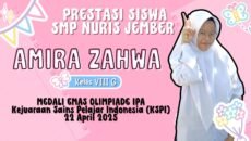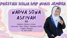 Prestasi22/10/2025 SMP Nuris Jember Bikin Heboh! Nadya Sona Asfiyah Sabet Medali Emas Olimpiade IPA Nasional KSPI 2025! Langkah Pasti Nadya Sona Kini Menjelma Jadi Bintang Sains yang … Share