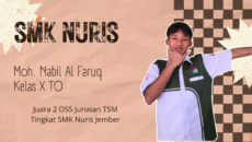 Prestasi29/11/2025 Moh. Ayyub Ainurridho. Siswa Kelas X TO, dengan Percaya Diri Tinggi Sabet Juara 3 OSS Bidang TSM di SMK Nuris Jember Tekun di Bengkel, Ayyub Tunjukkan Kemampuannya Pesantren Nuris – Nama … Share