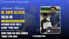 Prestasi04/12/2025 Siswa MI Unggulan Nuris Jember Berhasil Raih Juara 1 Olimpiade Matematika di Ajang PSDO 2024! M. Safri Alfatih Kembali Banggakan Madrasah! Pesantren Nuris – Prestasi … Share