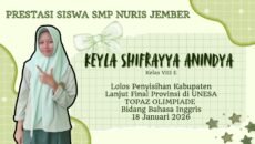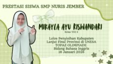 Prestasi24/04/2026 Mengguncang Panggung Prestasi! Siswi SMP Nuris Jember, Keyla Shifrayya Anindya, Lanjut Final TOPAZ 2026 Dari ‘Love English’ Jadi Level Next: Perjalanan Keyla yang Auto … Share