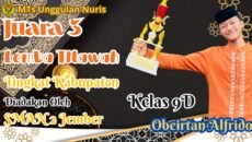 Prestasi28/04/2026 Prestasi Terus Mengalir, Siswa MTs Unggulan Nuris, Obertan Alfrido, Raih Prestasi Juara 3 Tilawah Tingkat Kabupaten Perjalanan Ketekunan dan Dedikasi Obertan Alfrido dalam Mengharumkan Nama Madrasah … Share