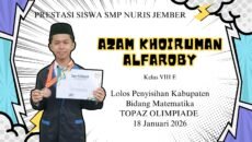 Prestasi21/04/2026 Ledakan Jenius dari SMP Nuris Jember: Azam Khoiruman Alfaroby Taklukkan Puncak Matematika Siap Mengguncang Provinsi! Manifestasi Logika Tanpa Batas, The Real Math King dari Jember … Share